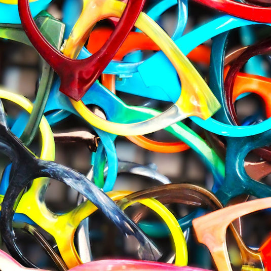 The raw material (Grilamid TR90) used in producing our frames is sourced from the waste generated by other eyewear companies' manufacturing processes. This waste is meticulously collected, sorted by color, ground, stored, conditioned, and re-used.